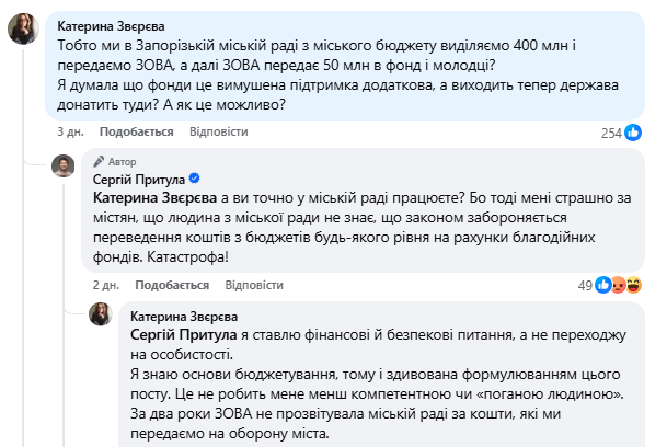 Сергій Притула знає цей нюанс: він сам написав про нього у відповідь на запитання запорізької депутатки Катерини Звєрєвої.