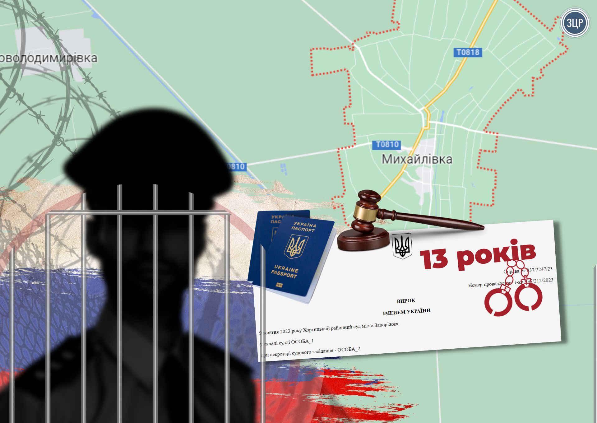 Війна |  21 Жовтня 2023    У Запоріжжі засудили на 13 років “поліцейського” з Михайлівки  Слідчі встановили, що напочатку квітня 2022 року російські окупанти призначили старшого зміни патрульних “Отделения полиции № 3” у смт Михайлівка. Обіймати цю посаду погодився місцевий житель Володимир Агеєв.     ![]() Війна |  16 Жовтня 2023    У Запоріжжі засудили очільника “народної міліції” Вадима Міхєєва  Суд виніс вирок колишньому співробітнику МВС, що добровільно обійняв посаду керівника так званої «народної міліції» у Мелітополі. Деталі судового процесу розповідає “Запорізький центр розслідувань”