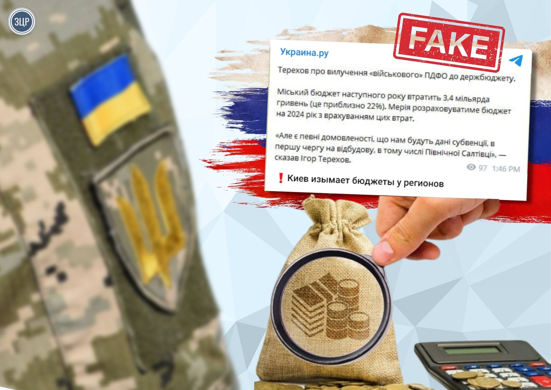 ЗЦР-check | 17 Жовтня 2023 Маніпуляція пропаганди: Київ “знекровлює” східні регіони перед тим, як вони “відійдуть” Росії Російські пабліки підшукали черговий спосіб довести своїм фанатам, що схід України “ображають”. Для цього використали маніпуляцію із податком на доходи фізосіб - ті самі податки з зарплати військових, які вилучатимуть із бюджету усіх громад України, щоб спрямувати на закупівлі та виробництво зброї для армії. Пропагандисти стверджують: східні області постраждають найбільше. Що відбувається насправді - читайте далі. Ви підтримали Запорізький Центр Розслідувань!