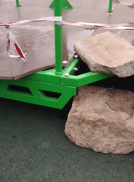 ЗЦР зв’язався із виробником обладнання – компанією Miros. Нам оперативно надали результати випробувань ПВХ-плити. І повідомили, що, судячи з відео, поломка каруселі – результат вандалізму.