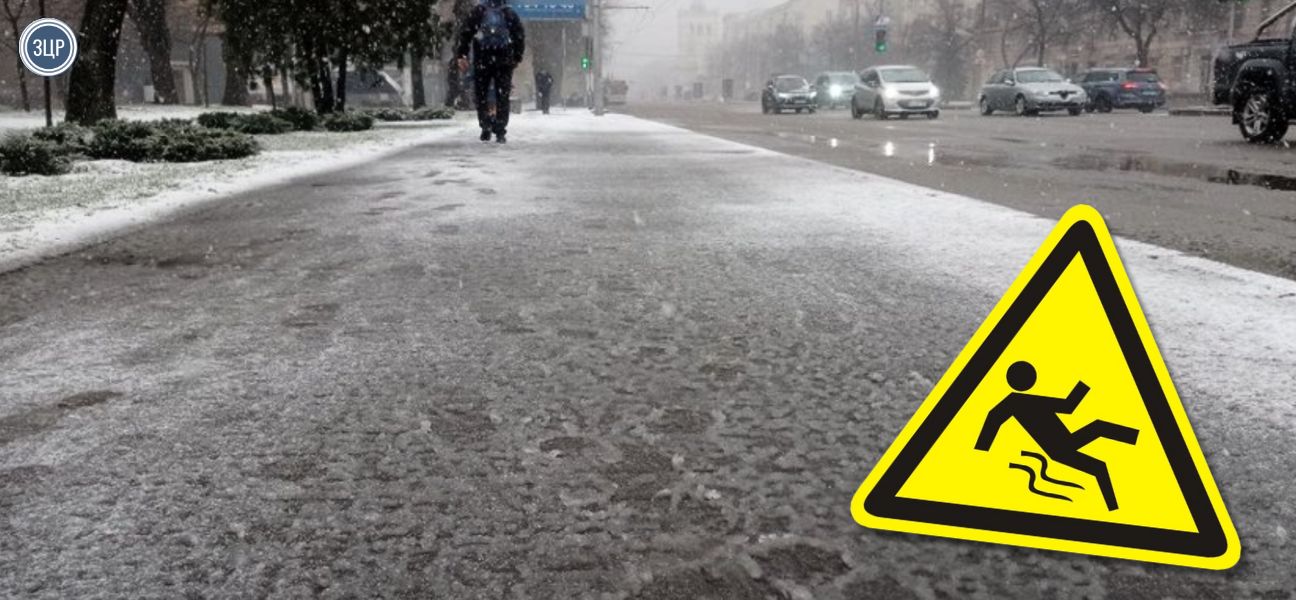 Після майже місяця снігопадів у Запоріжжя прийшло потепління – і ковзанка на доріжках. Як не впасти на підступній поверхні, і куди звертатися, якщо все ж травмувалися?