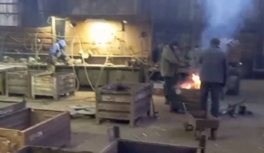 Ранкова зміна на заводі. Обладнання та деталі засипає снігом: у приміщенні просто немає даху. На вулиці мороз, робітники працюють у фуфайках. Щоб не замерзнути остаточно, гріються біля багаття. Його розвели просто у виробничому приміщенні. Це – «звільнений» мелітопольський завод