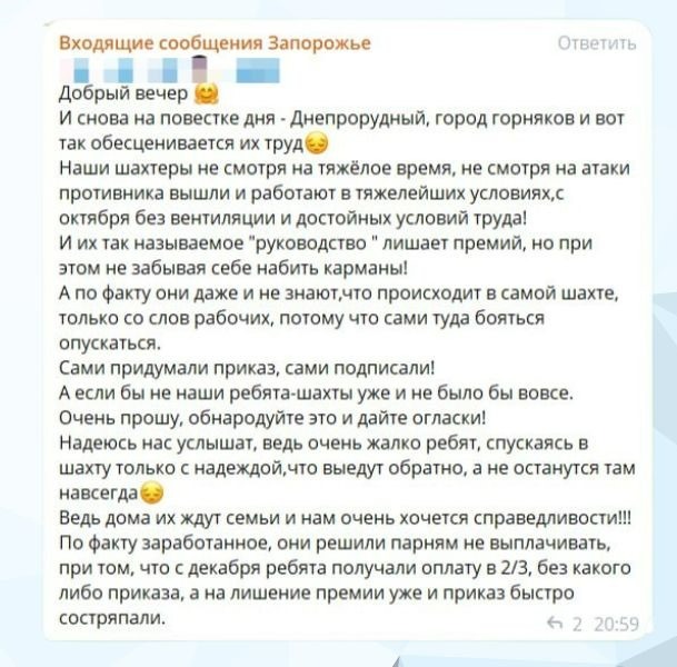 Гірняки працюють у важких умовах, з жовтня взагалі без вентиляції. З грудня робітники отримували лише частину заробіної плати. Ще і премію за січень відмінили. При тому керівництво комбінату себе у виплатах не обділило