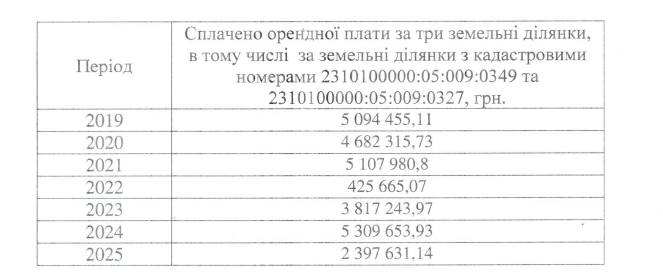 Згідно з оновленим договором, орендна плата для двох ділянок становила близько 4,93 млн грн на рік.