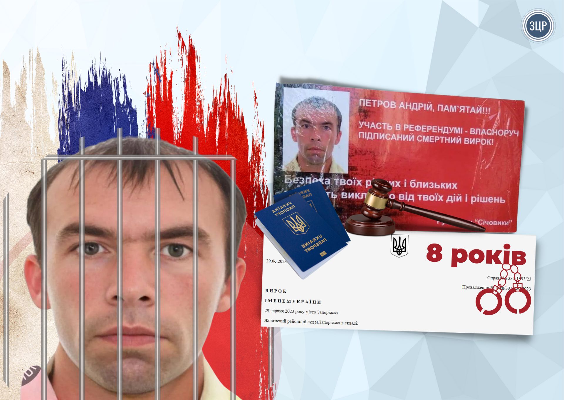 Війна | 30 Серпня 2023 Пропагував «російський мир» і хотів керівну посаду: На Запоріжжі засудили пособника окупантів Житель селища Михайлівка Запорізької області отримав вісім років ув’язнення за колабораціонізм. Також йому на 12 років заборонено обіймати керівні посади в органах влади, організаціях та підприємствах будь-якої форми власності. Судовий процес був заочний, адже фігурант перебуває на тимчасово окупованій території Запорізької області