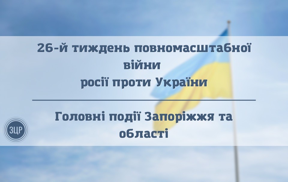 Війна | 21 Серпня 2022 26-й тиждень повномасштабної війни росії проти України. Головні події Запоріжжя та області Зведені новини по Запоріжжю та області 26-го тижня повномасштабної війни росії проти України, 15-21 серпня 2022 року.