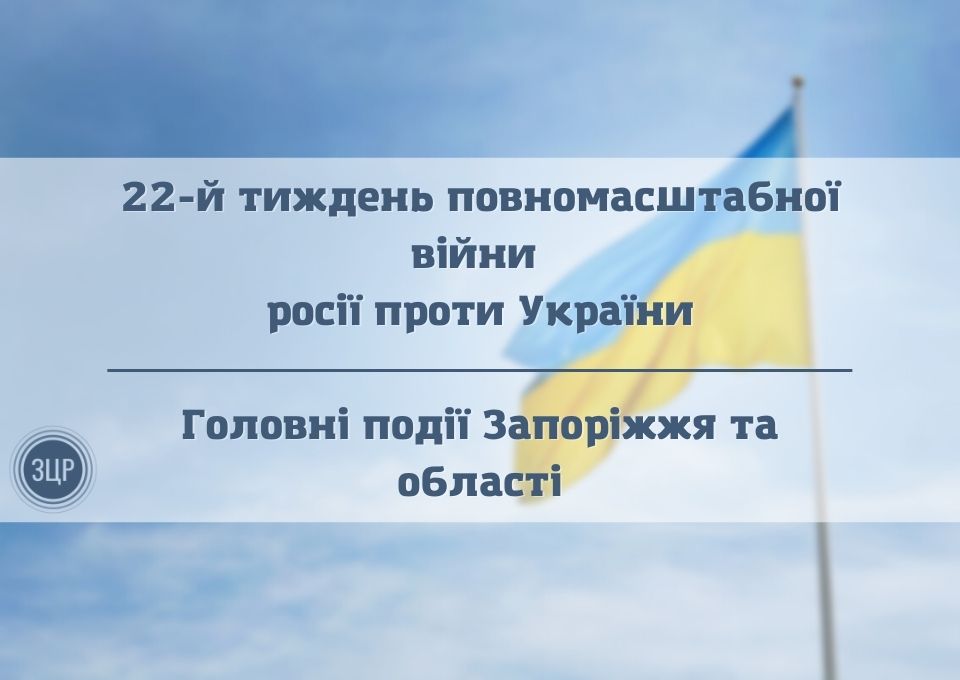 Війна | 24 Липня 2022 22-й тиждень повномасштабної війни росії проти України. Головні події Запоріжжя та області Зведені новини по Запоріжжю та області 22-го тижня повномасштабної війни росії проти України, 18-14 липня 2022 року.