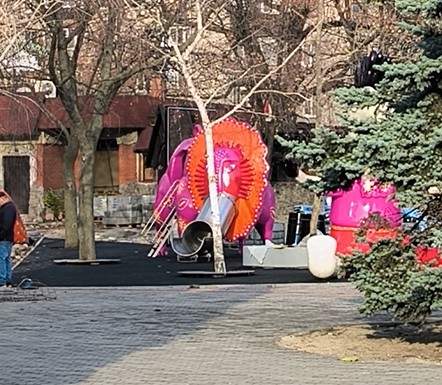 «Фантастичні фігури» вже почали встановлювати. Зараз вони за будівельним парканом, але ЗЦР зробив декілька фото.