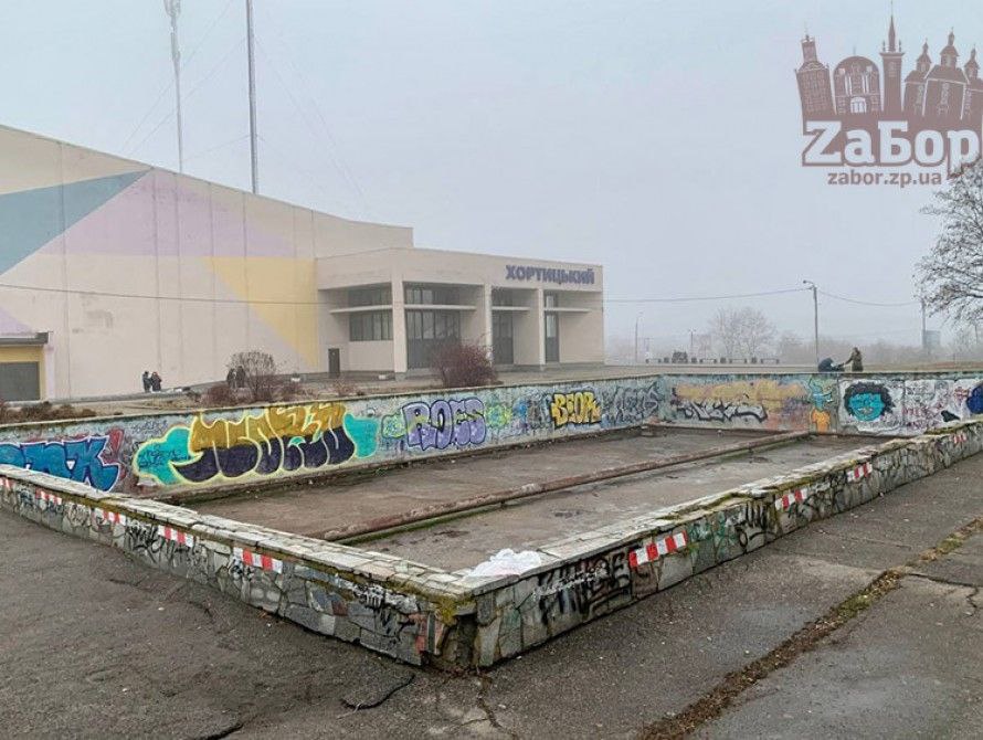 Фонтан-охолоджувальний басейн вже багато років не працює. У 2021 році мешканці Хортицького району навіть запускали петицію, щоб його відремонтували чи засипали і зробили клумбу.