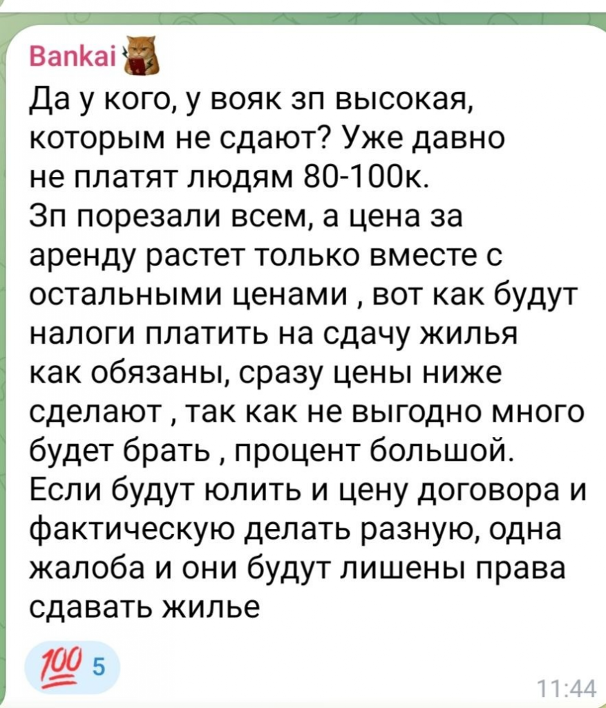 Ще однією значною зміною став різкий ріст цін на оренду житла. У Мелітополі оренда однокімнатних квартир зараз коштує від 40 до 50 тисяч рублів на місяць (приблизно 20-25 тисяч гривень), двокімнатних — від 35 до 55 тисяч рублів.