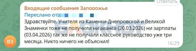 Скарги з’явилися не в офіційних звітах (там, як завжди, «все добре»), а в одному з окупаційних телеграм-каналів. Першим «пощастило» педагогам із Дніпрорудного. Але дуже швидко флешмоб підхопили вчителі Кам’янки-Дніпровської, Великої Знам’янки та Михайлівки. Виявилося, що проблема не локальна, а «масштабована».